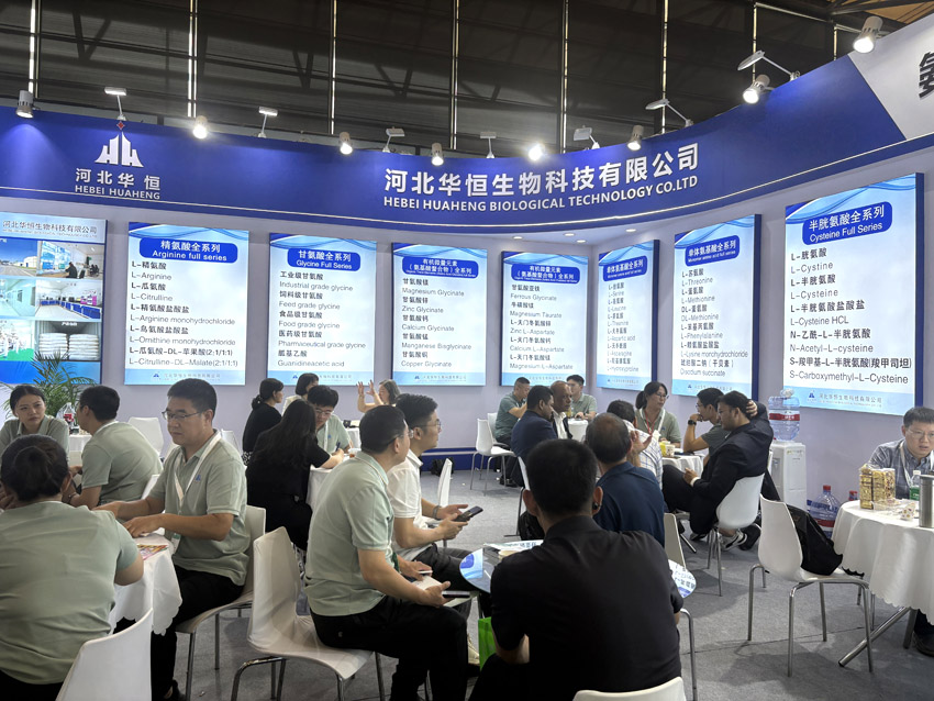河北華恒生物科技有限公司在展會(huì)上集中展示了甘氨酸系列、半胱氨酸系列、精氨酸系列、單體氨基酸系列、有機(jī)微量元素系列等五大核心產(chǎn)品矩陣,特別是甘氨酸鎂、甘氨酸鋅、甘氨酸鈣等氨基酸螯合物產(chǎn)品,吸引眾多海內(nèi)外客戶駐足交流。